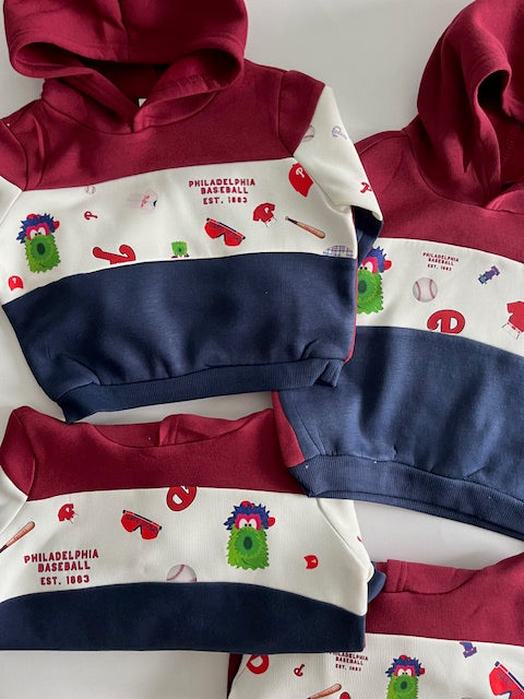 The cutest color block hoodie to have for the chilly baseball season! Each one is made by hand and unique - no two hoodies are exactly the same!
